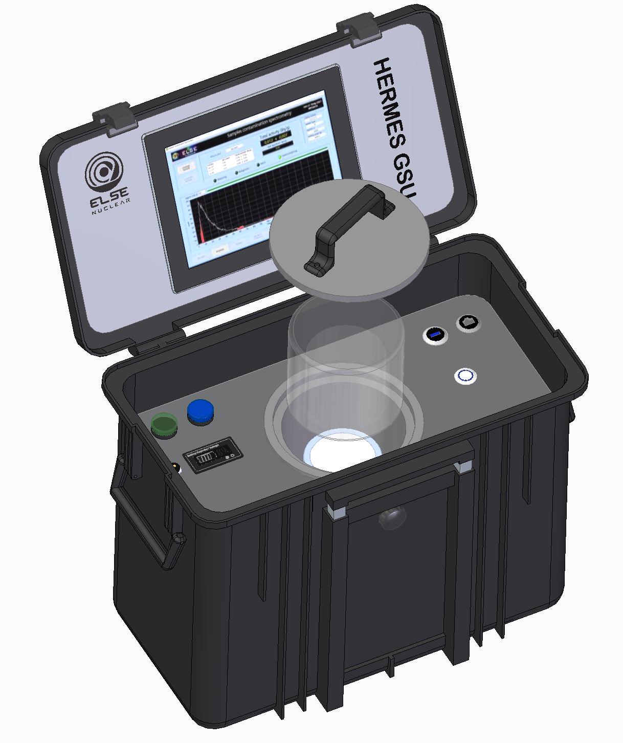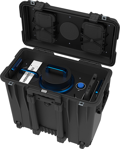 HERMES GSU is a portable gamma spectrometry system designed for rapid and precise in-field analysis of environmental samples. As part of the HERMES product line, it features a rugged, modular, and self-contained design housed in a high IP-rated technical case, ensuring durability and reliability in demanding conditions.