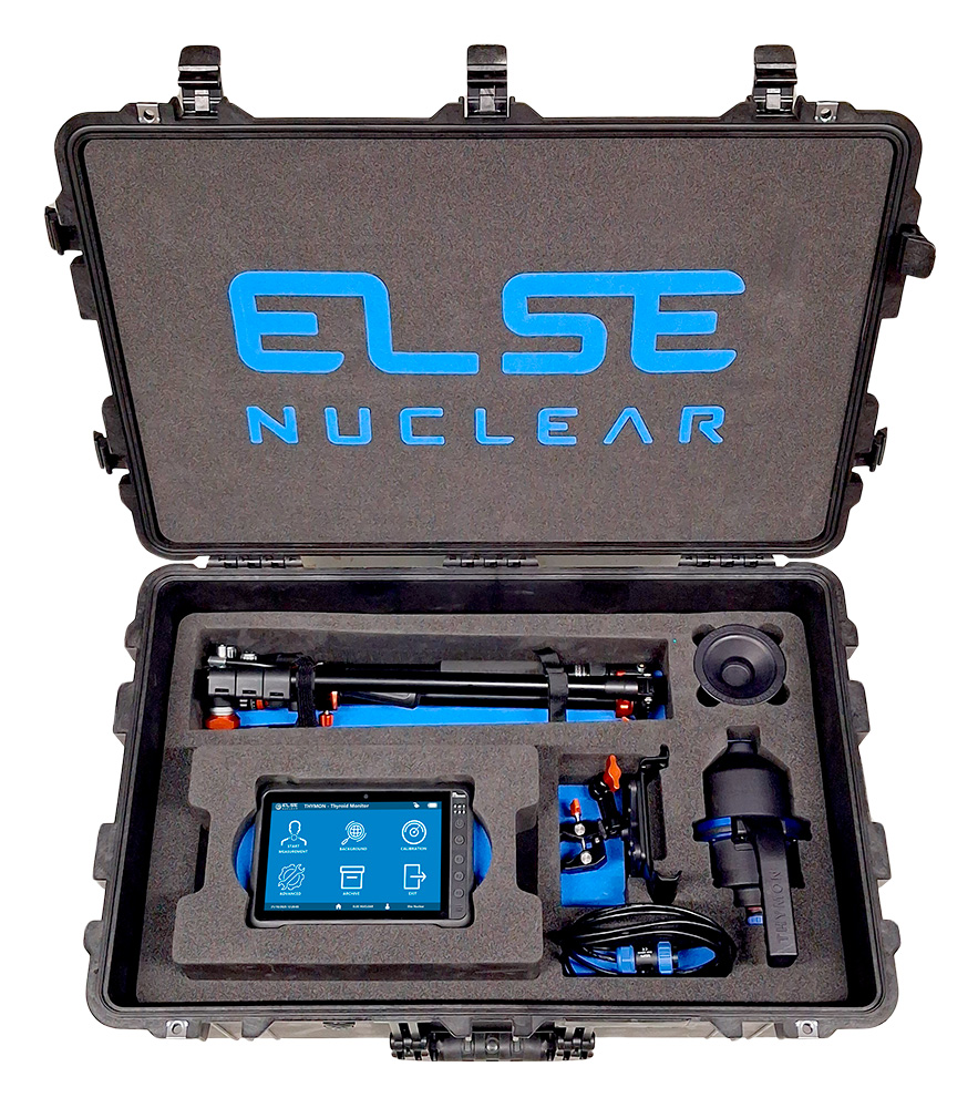 THYMON is a compact NaI(Tl)-based detector specifically conceived to fast, yet reliably, measure I-131 contamination in thyroid. Its compactness, ruggedness, light-weight, together with its simple and intuitive built-in software interface, make the device perfectly suited for emergency screening applications. The instrument can be used either hand-held or hands-free. The instrument is composed by three main subparts: